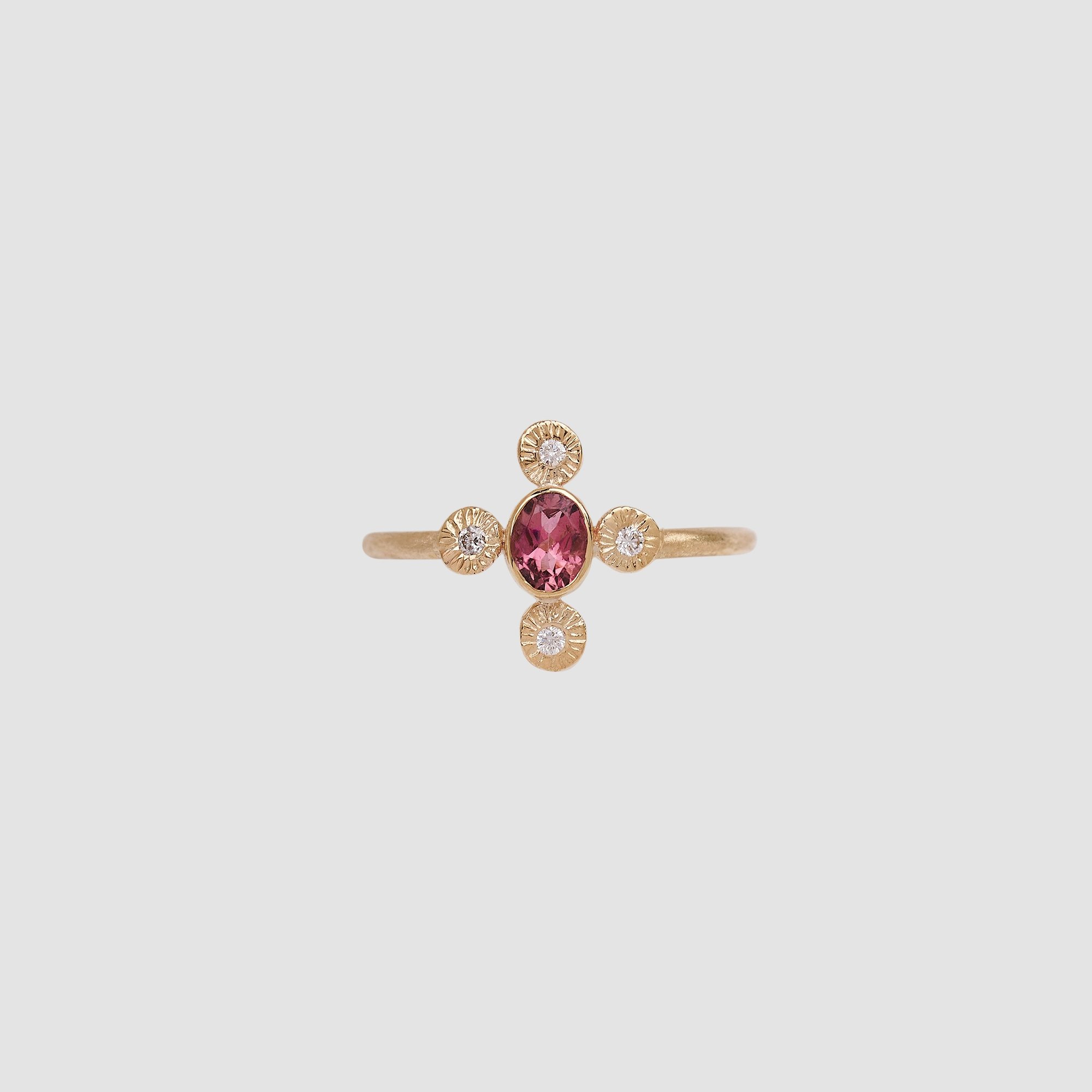 9ct gold ring, handmade using recycled gold, Fair Trade diamonds and a beautiful Fair Trade pink tourmaline.