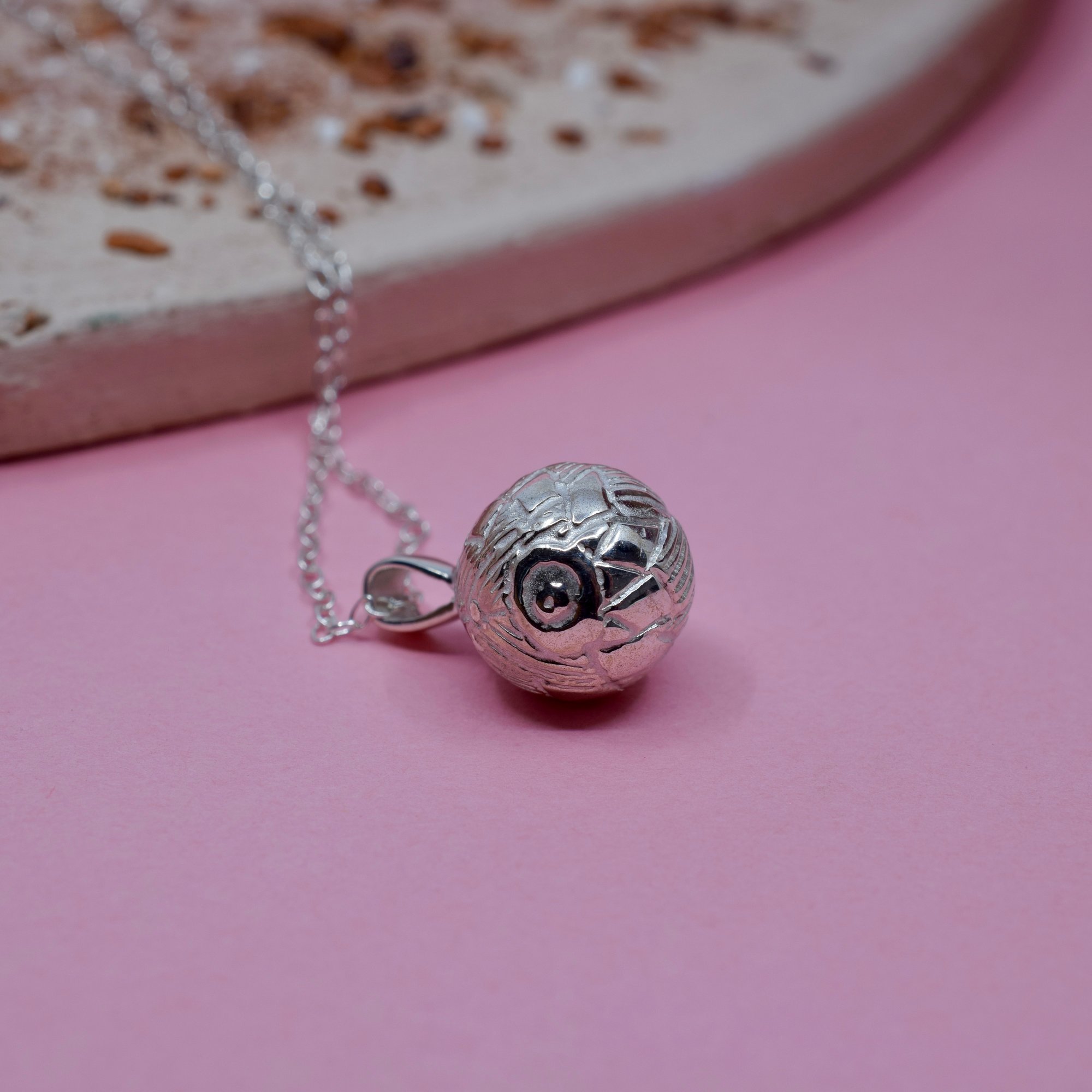 Pendant measuring approximately 1.8cm in diameter and comes on a 18" fine trace chain.